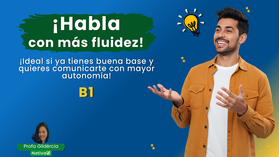 En B1 comenzarás a comunicarte con más soltura y seguridad en conversaciones más completas. Aprenderás a expresar opiniones, explicar ideas, contar experiencias y desenvolverte mejor en distintos contextos personales o profesionales.